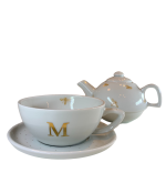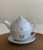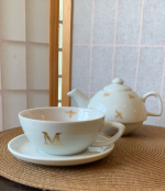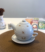 Bule em porcelana com 3 peças: Bule, Xícara e Pires.