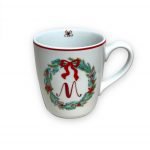 Caneca em porcelana, 225ml com filete e letra coloridos. Personalize com a sua inicial na parte de fora!