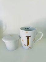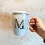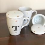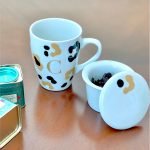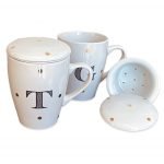 Caneca em porcelana, 300ml, com peneira para infusão e tampa. Escolha sua estampa preferida e personalize com a inicial na parte de fora e uma frase especial dentro (opcional)!