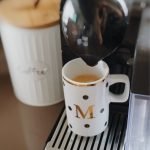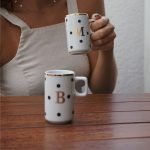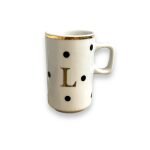 Caneca em porcelana, 100ml com filete e letra. Escolha o modelo e personalize com a sua inicial!
