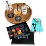 Caixa G – 31x17x5cm – 06 espaços para especiarias (Zimbro, Canela, Pimenta Rosa, Hibisco, Anis Estrelado e Laranja), espaço para colher, dosador, mexedores e porta copos, tampa personalizada.