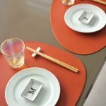 Kit sushi em porcelana, com 2 ou 4 Molheira de 8×5,5cm, 2 ou 4 Pares de Hashi de 24cm e 2 ou 4 Suportes para Hashi de 5×1,2cm
