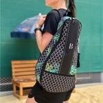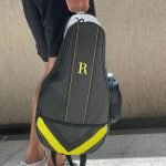 1 – Raqueteira em tecido oxford personalizado, tamanho 54x29x12cm, com bolso interno e um externo, e lugar pra garrafinha.