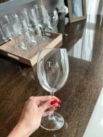 Taça para vinhos com um design sofisticado, com haste longa e boca levemente mais fechada, preservando o aroma da bebida. Pode ser personalizada com iniciais para um toque único e especial.